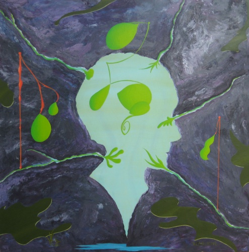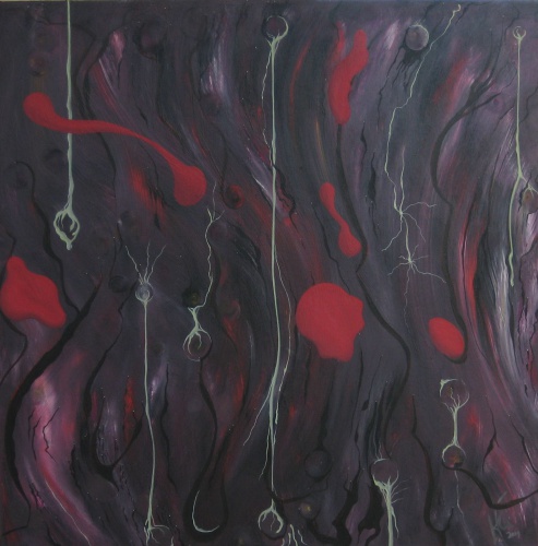 Bei diesem bild möchte ich dir volle betrachtungsfreiheit geben. Ich enthalte mich jeder interpretation. Das bild hat für seine vollendung mehr als ein jahr gebraucht und ist in zwei schritten entstanden. Alles geschieht intuitiv, aus dem gefühl heraus. Etwas ist in mir und es will heraus. Wenn du das bild betrachtest gehst du umgekehrt vor: Du siehst einen ausschnitt, was macht er mit DIR? Wo im körper spürst du etwas?