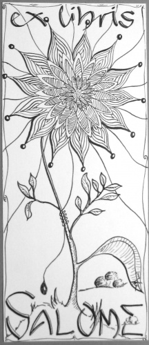 Ich mag Salome - nicht nur weil sie liest. So könnte ich mir unsere tochter vorstellen, hätten wir eine bekommen. Da habe ich ihr aus einer guten laune heraus ein 'ex libris' gezeichnet. Wo würde sie das ex-libris bei einem e-book eigentlich hinstecken?