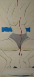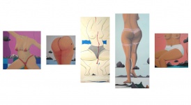 Den abschluss der serie 'bergfrauen' bildet die dame in weissen hotpants zu füssen des 'wendelsteins'. Gegenüber dem wendelstein liegt das 'kranzhorn' und zwischen den beiden zitiere ich aus meinem 'innportal': in tiefem türkis lasse ich den inn aus den bergen in den einstigen 'rosenheimer see' fliessen. In der darstellung der leicht bekleideten dame wird nochmal das surrealistische element aller frauendarstellungen dieser serie erkennbar: die dame sitzt – aber worauf? Die heuberg-dame steigt – aber welche stufe? Die hochries-frau besteht nur aus der silhouette – aber wie kann sie ihr zartes 'nichts' anziehen? Die kampenwand-frau – besteht sie nur aus gesäss und beinen? Die hochfelln-dame – hat sie den kopf verloren? Ich überlasse dich den rätseln. Neben dem rätselhaften verbindet alle bilder das 'wolken-thema' aus dunklen cumuli.