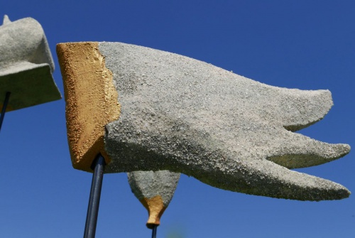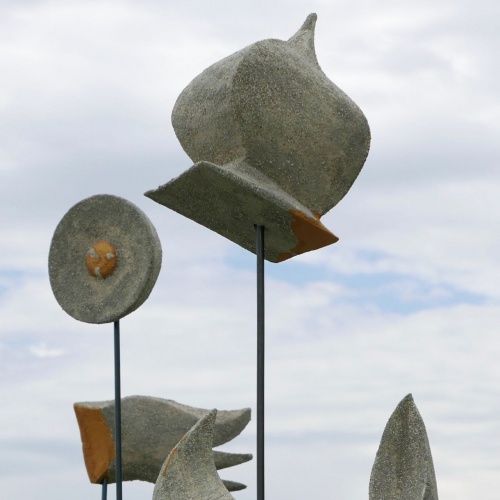 Die skulpturen sind zwar wetterfest. Dennoch wird die witterung ihre spuren zeigen. Schliesslich ist alles vergänglich. Sehr sichtbar wird dies zuerst an den stahlstangen und stahlfüßen, wenn sie nach dem ersten regentag beginnen zu rosten. Damit wird aus den scheinbar toten materialien lebendige kunst.