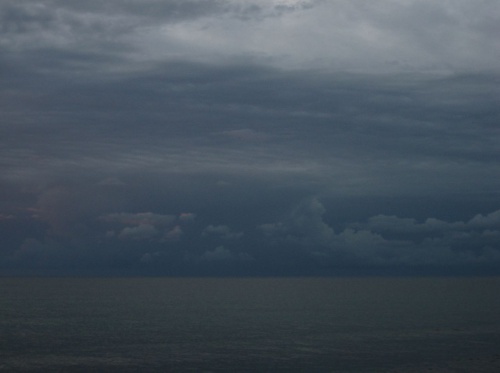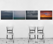 Wenn ich die fotografien auf leinwand drucken lasse und die grösse 40 cm x 50 cm wähle, dann ergibt bei dieser hängung eine gesamtlänge von ca. 220 cm. Diese wunderbare bildfolge hängt nun in einer psychotherapeutischen praxis im wartebereich: wolkenverhangen - wie ein schleier - gewitter - und schliesslich auflösung und leichte heiterkeit. So könnte auch der psychotherapeutische prozess ablaufen.